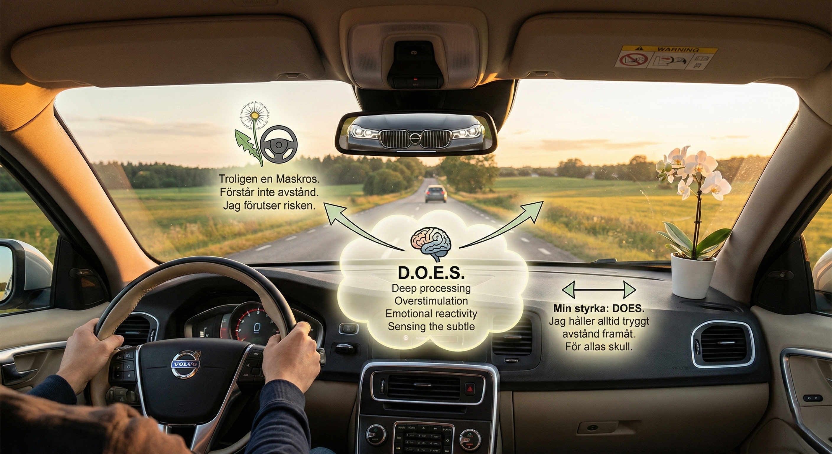 Den kognitiva arkitekturen i förarsätet: En elev med maskrosprofil kännetecknas av en hög tröskel för stressaktivering och en effektiv återhämtningsförmåga i nervsystemet. I trafikmiljön innebär detta:
